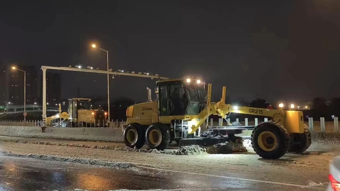 徐工平地機加滿油箱,列隊集合、整裝待發(fā),全力以赴投入到破冰除雪,為道路暢通和行車安全保駕護航。徐工的機手們更是發(fā)揮了徐工人無畏艱苦、敢于奉獻的精神,以高度的責任感和使命感,堅守在除雪一線,保障市民的安全出行。冰雪紛飛的夜幕下,徐工平地機的燈光照亮了歸家人的路。