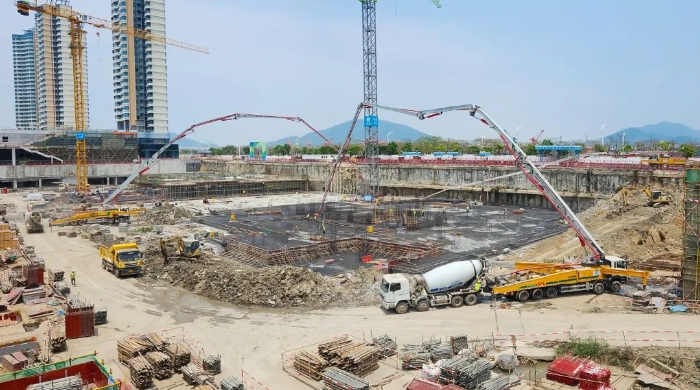 據(jù)了解,橫琴科學城(一期)是全國最大的EPC房建項目,涵蓋31棟建筑,用地面積約32.2萬平方米,總建筑面積高達116萬平方米。而此次施工更是需要一次性澆筑5000方C35標號混凝土,這無疑是一場對設備性能與施工團隊能力的嚴峻考驗。