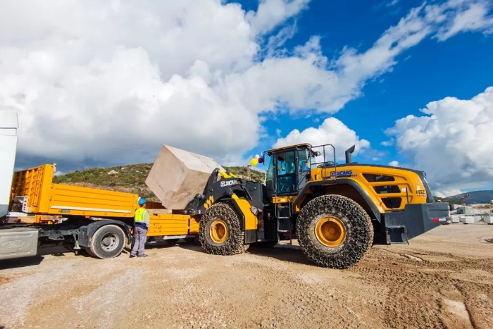 大理石開采專用裝載機交付歐洲客戶成為當(dāng)?shù)氐V區(qū)實!力!擔(dān)!當(dāng)!