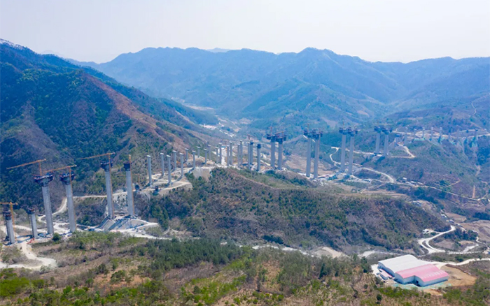 樂望高速是黔桂兩地便捷連通的重要省際通道,主線橋隧比達78%,是目前廣西橋隧比最高的高速公路。雅長特大橋作為樂望高速控制性工程之一,全長2312米,主橋主墩最大高度155米,為廣西第一高墩。