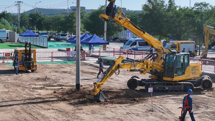 在寧夏現(xiàn)場的應用中,徐工開挖立桿一體機的安全性和效率出色,完成一套完整工序(挖坑-放置預制件-抓桿-豎桿-回填土-夯實)僅需18分鐘,比競品效率快三分之一。