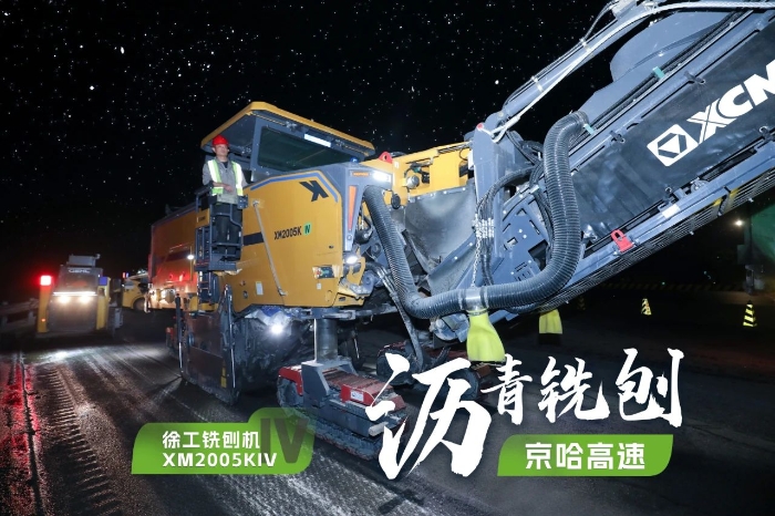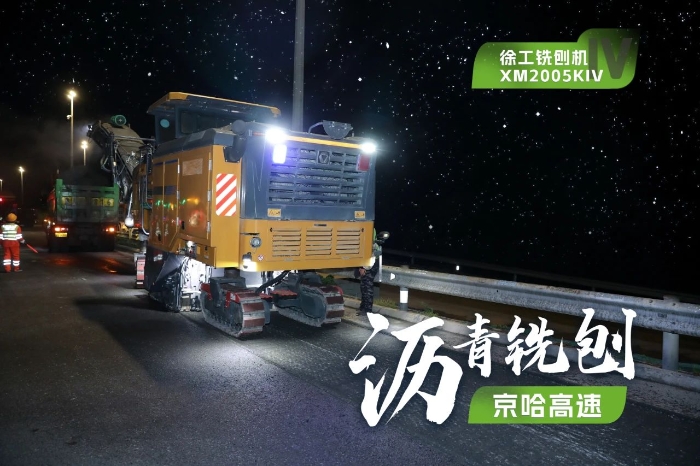 此次施工項目為京哈高速的路面改擴(kuò)建工程,銑刨深度5cm,銑刨速度25m/min。由于北京地區(qū)日間車流量大,交通壓力較大,因此施工方選擇在夜間施工,日間恢復(fù)行車,盡量避免施工給交通帶來影響。由于夜間施工更加考驗施工設(shè)備的穩(wěn)定性、施工質(zhì)量的可靠性,施工方選擇了兩臺徐工兩米銑刨機(jī)作為本次高速公路養(yǎng)護(hù)工程的銑刨設(shè)備,分別為XM2005KIV和XM200KII,同時進(jìn)行銑刨作業(yè),并肩作戰(zhàn),按下施工進(jìn)度快進(jìn)鍵。