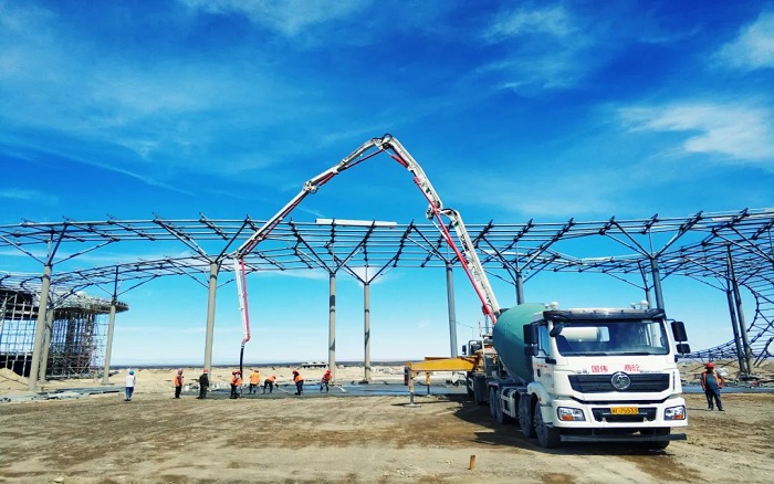 賀蘭山下,塞上江南。近日,中寧±800千伏換流站廠房施工現(xiàn)場,徐工兩橋37米泵車靈動作業(yè),閃耀寧夏大地。