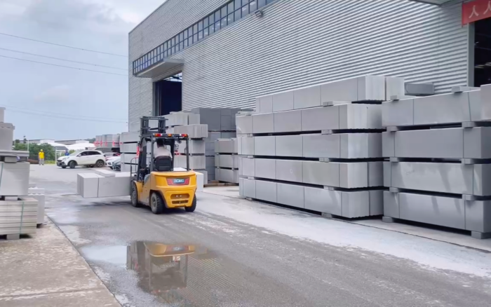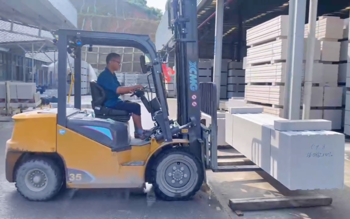 湖南某石材廠內(nèi),徐工叉車新 E 系列電動平衡重叉車,耀世登場!