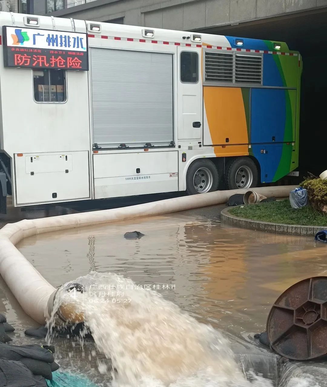 在位于桂林疊彩區(qū)大河圩旁的地下車(chē)庫(kù),徐工PS50B泵組式大流量排水搶險(xiǎn)車(chē)“五泵齊發(fā)”,再顯排水威力,經(jīng)過(guò)半日1夜的奮戰(zhàn),將洪水抽排見(jiàn)底。除設(shè)備外,徐工服務(wù)工程師也是24小時(shí)待命,全面進(jìn)行現(xiàn)場(chǎng)保障,為助力桂林開(kāi)啟加速“修復(fù)”模式,貢獻(xiàn)徐工力量。