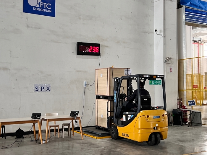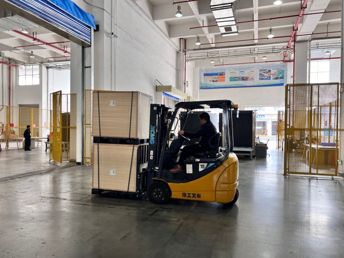 在華南區(qū)某大型保稅倉(cāng)內(nèi),十幾臺(tái)徐工三支點(diǎn)系列叉車正在進(jìn)行緊張的搬運(yùn)工作,