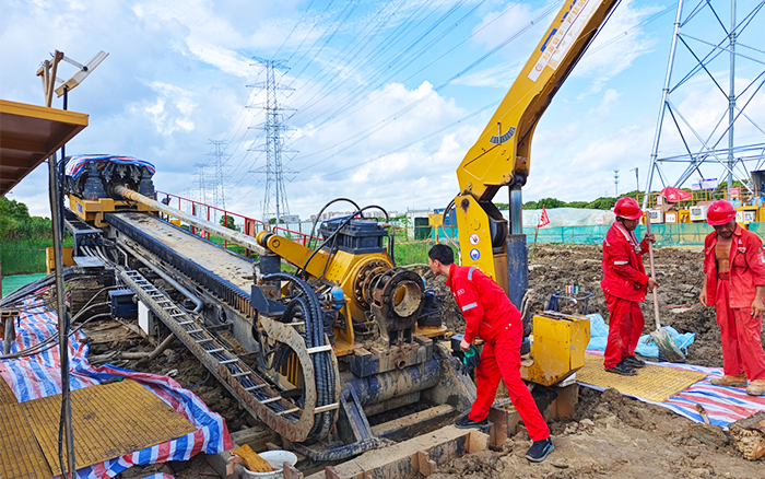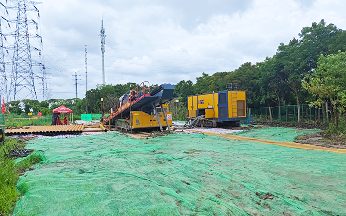為了確保定向鉆穿越有序推進和回拖順利完成,徐工技術(shù)人員隨項目部提前對現(xiàn)場進行實地勘察,培訓(xùn)作業(yè)人員,開展管道回拖演練。施工過程中,擴管回拖到泥巖層時,土質(zhì)粘稠抱鉆,徐工XZ6600水平定向鉆機搭載的“扭矩自適應(yīng)自動巡航施工技術(shù)”“多工況調(diào)速和旋轉(zhuǎn)”“推拉多檔控制技術(shù)”為回拖提供了更大的扭矩,確保了工程順利推進。