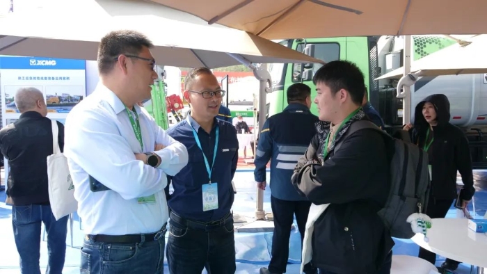 徐工新能源產(chǎn)品在展會(huì)的精彩亮相,吸引了大批來賓前往參觀咨詢。徐工環(huán)境相關(guān)領(lǐng)導(dǎo)陪同協(xié)會(huì)會(huì)長(zhǎng)陳永生一行在徐工展位參觀交流,向其詳細(xì)介紹了徐工參展的新產(chǎn)品的特色亮點(diǎn)及產(chǎn)品優(yōu)勢(shì),并表示徐工將不斷推進(jìn)新能源產(chǎn)品技術(shù)研發(fā),用更多優(yōu)質(zhì)產(chǎn)品搶占高端市場(chǎng),全面推進(jìn)產(chǎn)業(yè)高端化、智能化、綠色化、服務(wù)化、國際化“五化”轉(zhuǎn)型升級(jí)。