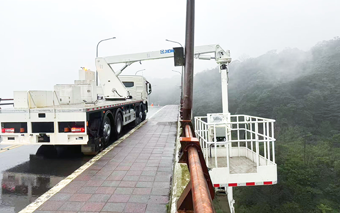 在檢測現(xiàn)場,徐工 QJZ18 大顯身手。其最大跨寬 4.4 米、最大跨高 5.6 米,水平作業(yè)幅度達 18 米,輕松跨越復(fù)雜橋體,快速抵達指定檢測點。施工單位現(xiàn)場負責(zé)人感慨:“以前檢測這種大橋,調(diào)整設(shè)備位置耗時久,效率低,現(xiàn)在有了徐工 QJZ18,效率大幅提升?!?其 270kg 承載的作業(yè)平臺,讓檢測人員能便捷攜帶儀器,細致檢測橋梁各處。