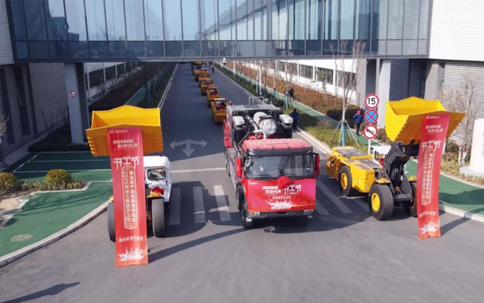 智慧領(lǐng)航,解鎖礦山成套化裝備新場景??蛇h程操控、無人駕駛的地下內(nèi)燃鏟運機成為了發(fā)車儀式上的明星產(chǎn)品。該設(shè)備集智能、環(huán)保、節(jié)能、舒適、全面、安全為一體,有效降低人員風險,復(fù)雜環(huán)境中仍持續(xù)穩(wěn)定作業(yè),安全性能和施工效率也贏得了客戶一致好評。