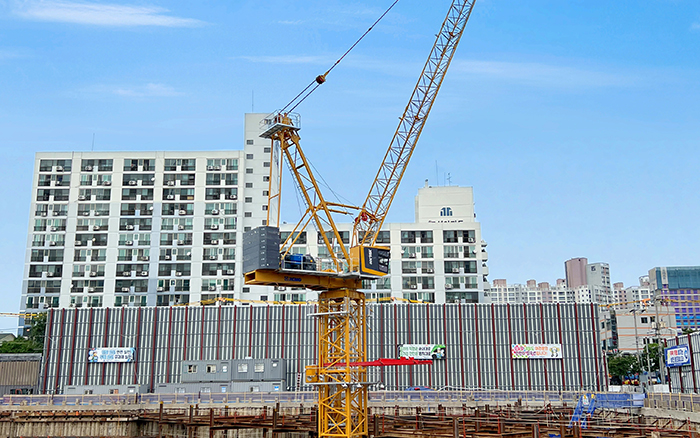 在韓國首爾,徐工塔機參建當地知識產業(yè)園項目,藍天白云之下,兩臺徐工XGL300-18S格外耀眼。韓國建筑密度大,項目施工空間較為有限,動臂塔機充分滿足當地建設需求。