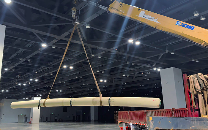 施工中,徐工隨車起重機憑借高強度鋼材打造的起重臂,展現出驚人的起重能力。吊運成卷塑膠卷材時,它動作流暢,如行云流水般將材料從貨箱卸下,穩(wěn)穩(wěn)送至場館指定鋪設位置。面對數噸重的特殊塑膠材料吊運難題,其四節(jié)臂體同步伸縮,輕松完成任務?!斑@設備的帶載能力遠超預期,再重、再難的吊運都不在話下!” 現場項目負責人對徐工隨車起重機的強大性能給予高度評價。