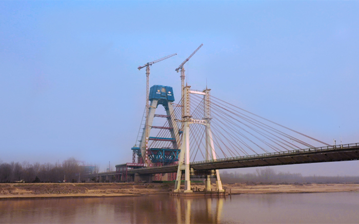 該新建黃河大橋長(zhǎng)約2.5公里,與老橋并行建設(shè),為公軌分層合建橋梁,上層為雙向八車(chē)道公路,下層為雙線軌道交通。這是黃河流域目前在建跨徑最大、鋼橋總長(zhǎng)最長(zhǎng)的公軌分層兩用合建斜拉橋,也是黃河上第一座不等跨并橋建設(shè)工程,工程總用鋼量達(dá)七萬(wàn)噸。