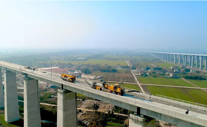 通過毫米級精度控制技術(shù),實現(xiàn)了復(fù)雜橋區(qū)多場景施工的高效協(xié)同,有效提升了橋面平整度與施工效率,確保了全球最大跨度斜拉橋的鋪裝質(zhì)量。