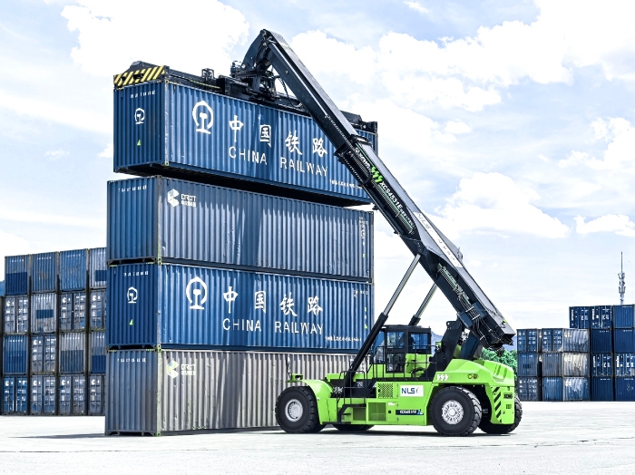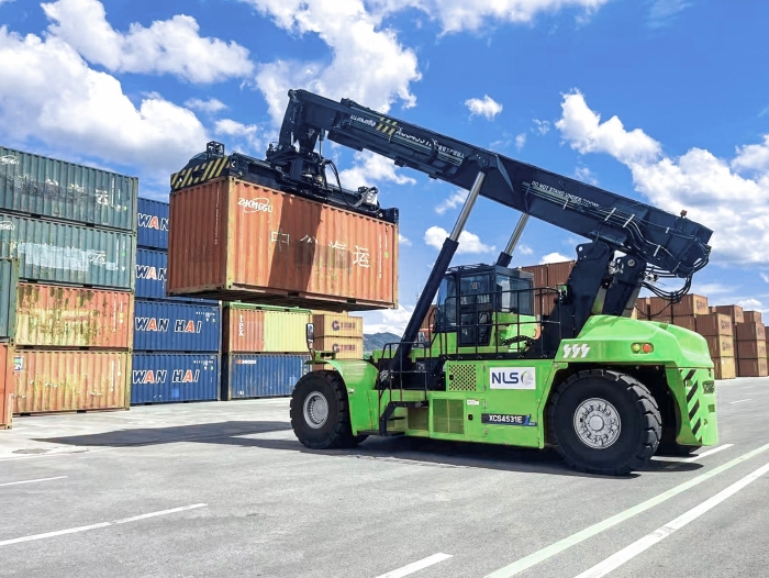 在西部陸海新通道某國際陸港樞紐,新交付的徐工XCS4531E3電動正面吊高效投入集裝箱轉(zhuǎn)運作業(yè),成為該樞紐綠色升級的核心動力。