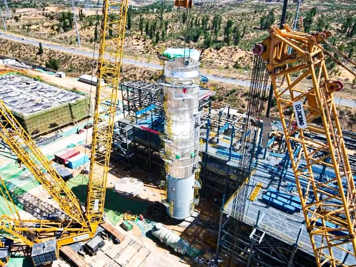 近日,在某大型多晶硅產(chǎn)業(yè)升級項(xiàng)目現(xiàn)場,徐工QUY450(450噸級)履帶起重機(jī)攜手XGC12000(800噸級)履帶起重機(jī)精密協(xié)同,成功完成項(xiàng)目首臺大型精餾塔吊裝任務(wù)。