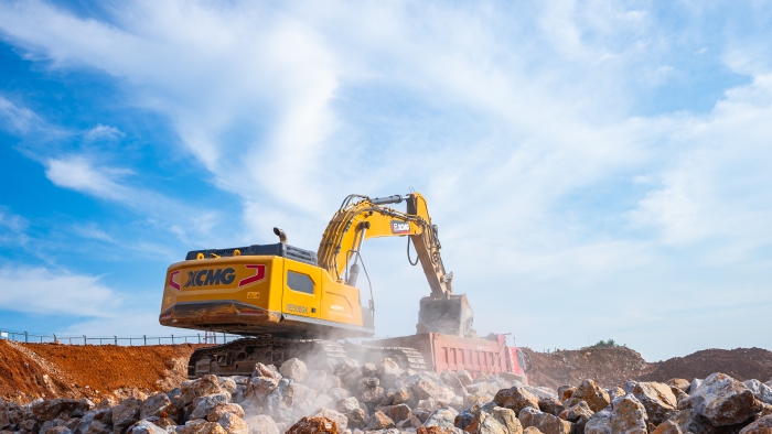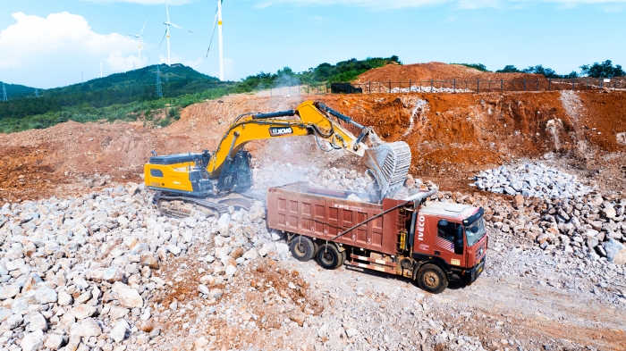 湖北宜城礦區(qū)深處,白云巖資源富集,開采作業(yè)正酣。徐工XE500GK液壓挖掘機以主力姿態(tài)投身于繁忙的開采隊伍當中,以卓越性能與可靠品質(zhì),贏得施工方高度認可,成為這片堅硬巖層中名副其實的“掘金巨無霸”。