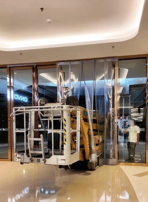 第一關(guān)是商場內(nèi)部空間有限的通道和門廊,徐工XGS26X-Li憑借僅0.99米的整機寬度通過狹窄的門廳,避免了拆門、擴口等繁瑣準(zhǔn)備。
