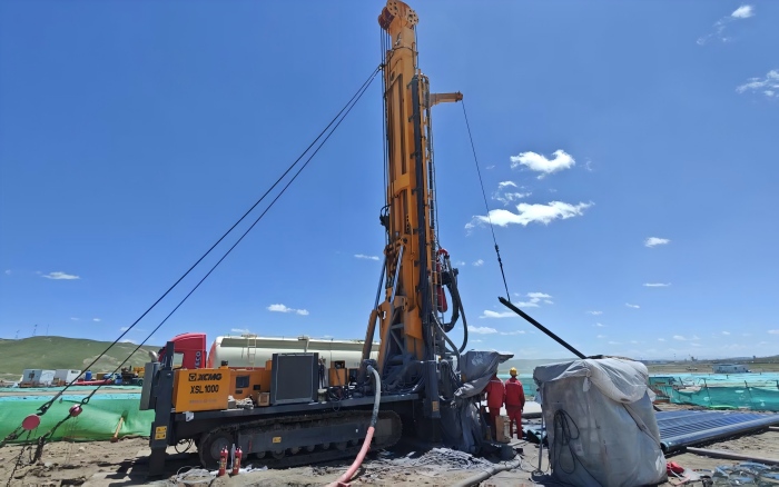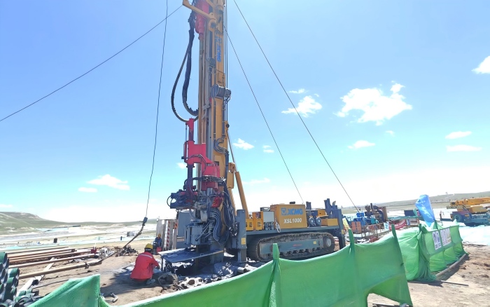 在嚴(yán)苛的高原環(huán)境中,徐工XSL1000深井鉆保持500m/天的鉆進(jìn)深度,縮短了單口地?zé)峋氖┕ぶ芷?。對此,施工方?fù)責(zé)人給予高度評價(jià):“徐工XSL1000深井鉆的穩(wěn)定性與可靠性遠(yuǎn)超我們的預(yù)期,實(shí)實(shí)在在為我們降低了整體施工成本,是我們這次施工的‘功臣’。”