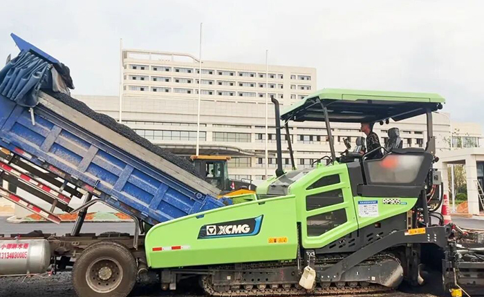本次施工中,徐工XS265HEV混合動力壓路機與RP905HEV混合動力攤鋪機強強聯(lián)手,組成“綠色鋪裝雙雄”,以硬核科技賦能城市品質(zhì)提升。