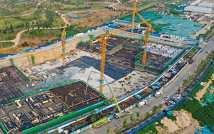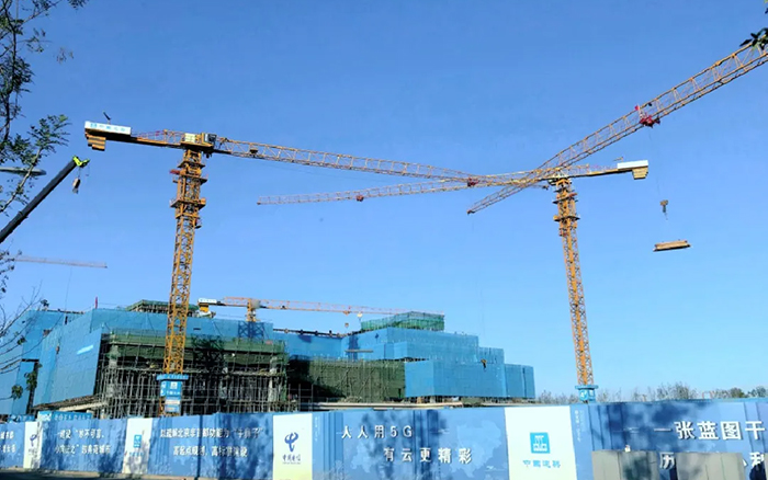 這片建筑群是雄安新區(qū)中國電信智慧城市產(chǎn)業(yè)園項目, 徐工S系列塔機奮戰(zhàn)在施工一線,見證雄安崛起。