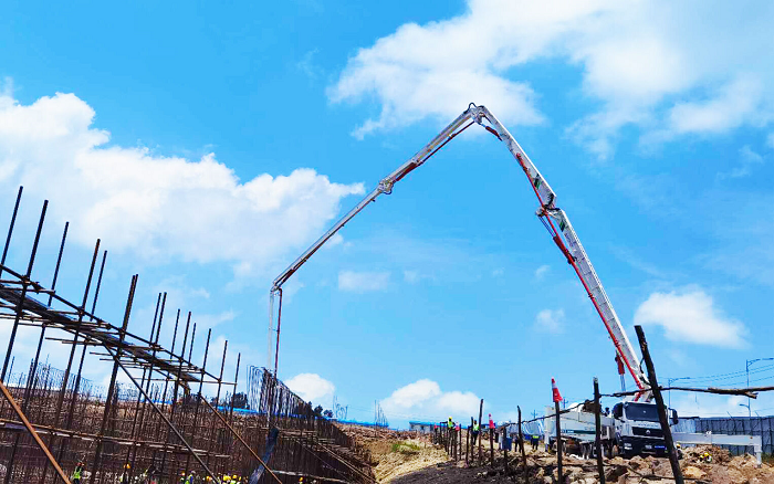 近日,在埃塞俄比亞的斯亞貝巴中地海外項(xiàng)目現(xiàn)場,徐工HB58V泵車擔(dān)當(dāng)施工主力軍。