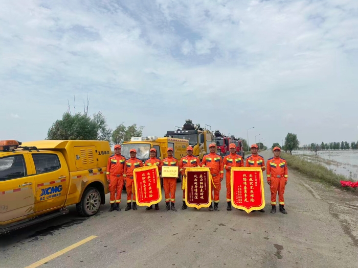 9月5日,內(nèi)蒙古自治區(qū)防汛抗旱指揮部于呼和浩特市托克托縣人民政府舉行防汛搶險隊伍歡送儀式,徐工應急救援隊等馳援內(nèi)蒙古的隊伍榮獲錦旗與證書。