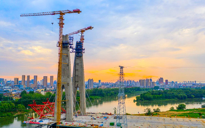 此次參建的項目是阜裕大橋項目,主要承接橋梁主塔的吊裝任務(wù)。阜裕大橋全長1735米,橋梁長1127米,主橋采用獨塔斜拉橋結(jié)構(gòu),主塔高95.6米,主橋斷面為60米超寬幅鋼箱梁,是國內(nèi)市政最寬鋼箱梁橋,建成后將成為阜陽的又一個“新地標”。