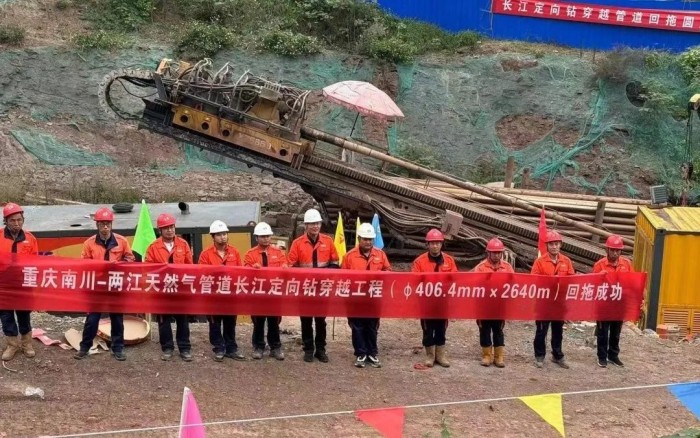 工程橫跨長江,施工路段地表層由粉質(zhì)粘土覆蓋,下層土質(zhì)為泥巖砂巖互層,地質(zhì)復(fù)雜。定向鉆穿越段采用D406.4×10.0 L415M直縫埋弧焊鋼管,穿越長度為2640米,深度達(dá)143米,穿越管道與長江底部最小間距為84.66米。施工設(shè)備的作業(yè)能力、工作效率都面臨非常大的考驗。