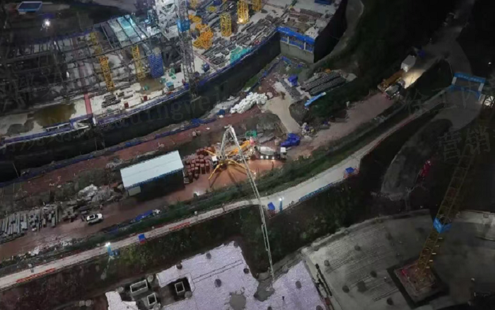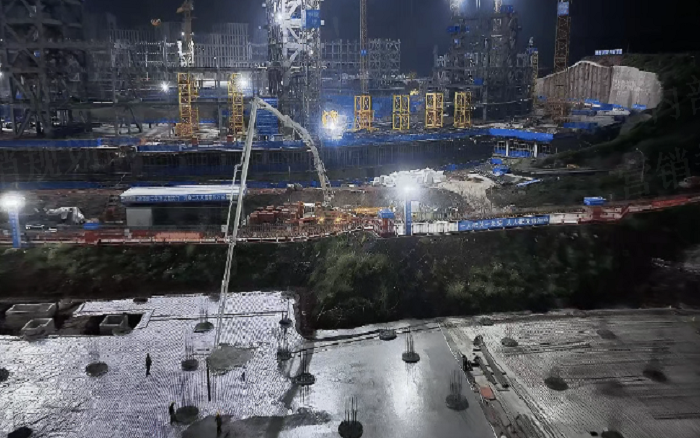 凌晨三點的重慶兩江新區(qū),徐工72米泵車展臂高空,20輛新能源攪拌車穿梭往來—這不是科幻電影場景,而是徐工混凝土成套化裝備助建重慶賽力斯全球汽車公園的火熱夜戰(zhàn)場面。