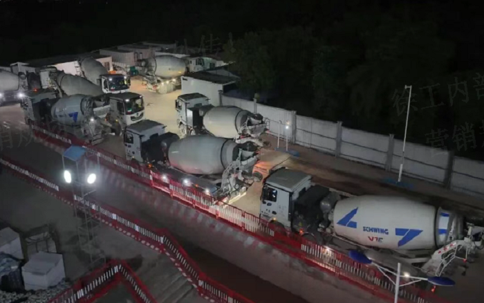 與此同時,20臺新能源攪拌車開啟無縫接力模式。搭載徐汽底盤超強動力系統(tǒng),以45分鐘雙槍快充、1.3度/公里的超低綜合電耗,全程保持不間斷輸送。憑借防水好、動力好、三電好、結(jié)構(gòu)好—“四好優(yōu)勢”全程護航。