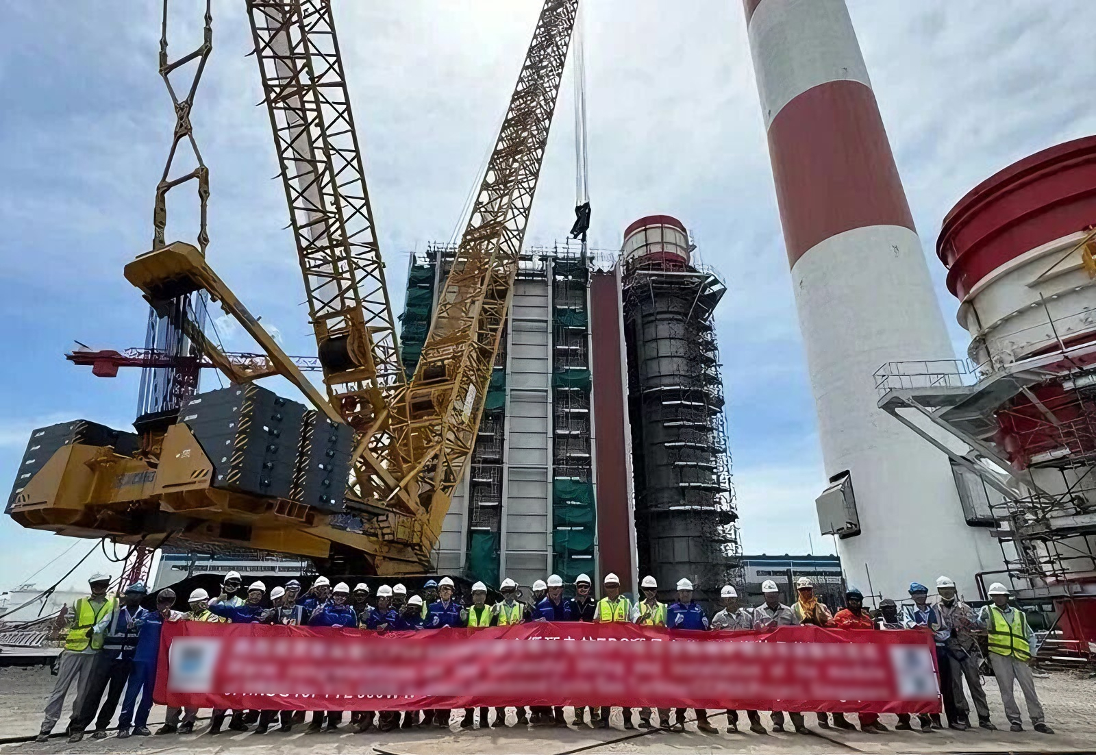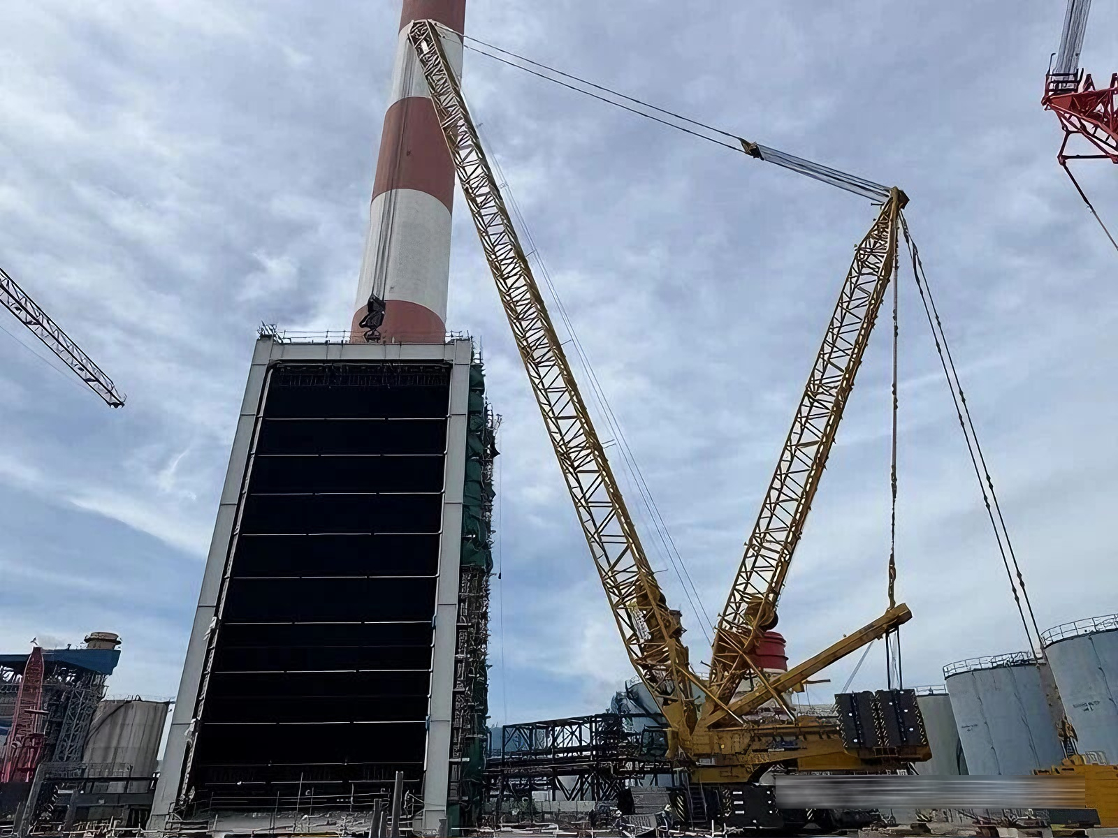 近日,在東南亞600兆瓦聯(lián)合循環(huán)電站項(xiàng)目建設(shè)現(xiàn)場(chǎng),徐工XGC16000(1250噸級(jí))履帶起重機(jī)圓滿完成余熱鍋爐全部受熱面模塊的吊裝任務(wù)。