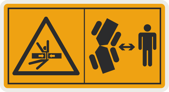 裝載機(jī)工作/啟動(dòng)時(shí),請(qǐng)保持安全距離。擠壓可能造成重傷或死亡。