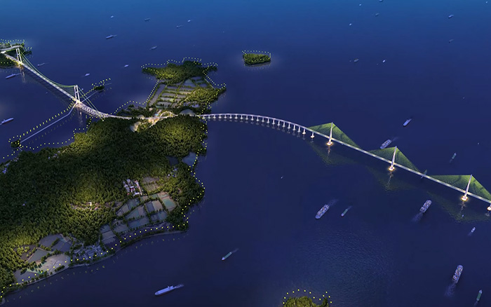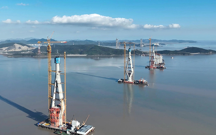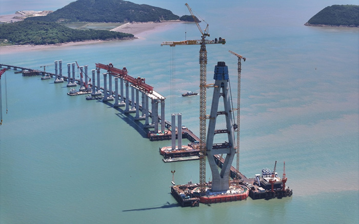 在青龍門大橋建設(shè)中,主塔毫米級精準控制與海上超高結(jié)構(gòu)吊裝成為關(guān)鍵難題。