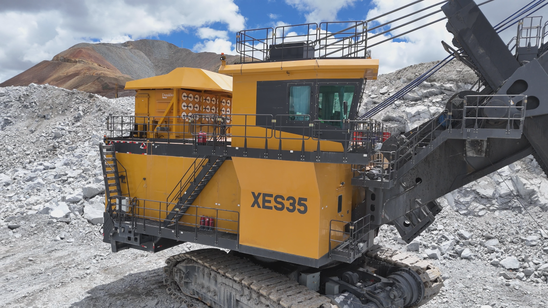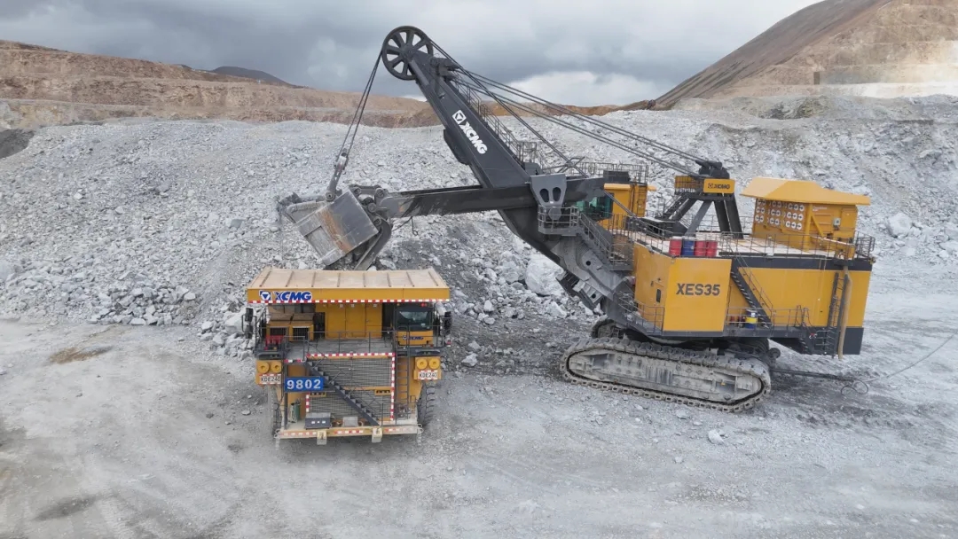 在海拔5300米的高原銅礦上,徐工XES35電鏟揮動(dòng)35立方米鏟斗,將約65噸礦石精準(zhǔn)裝入徐工XDE240礦車(chē),高效協(xié)同盡顯卓越性能。在高海拔低氧的極限工況下再創(chuàng)高產(chǎn)奇跡!