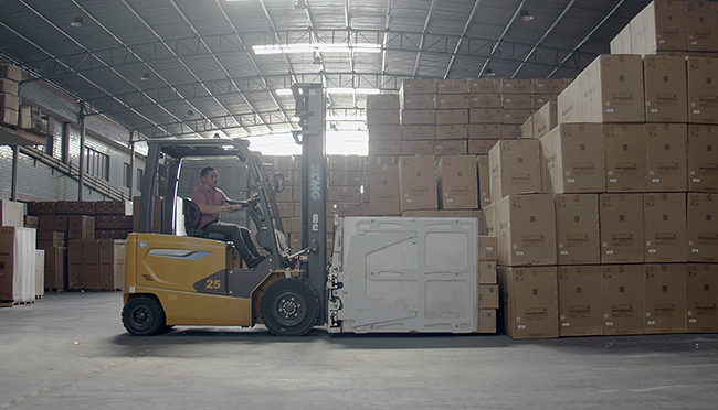 該客戶(hù)之前使用的燃油車(chē),成本高、噪音大、污染重,隨著使用年限的增加維修費(fèi)用也越高,因此節(jié)能環(huán)保的電車(chē)替代燃油車(chē)迫在眉睫。結(jié)合施工環(huán)境及家電搬運(yùn)需求,徐工叉車(chē)為客戶(hù)定制了鯤鵬系列2.5噸電動(dòng)叉車(chē)。