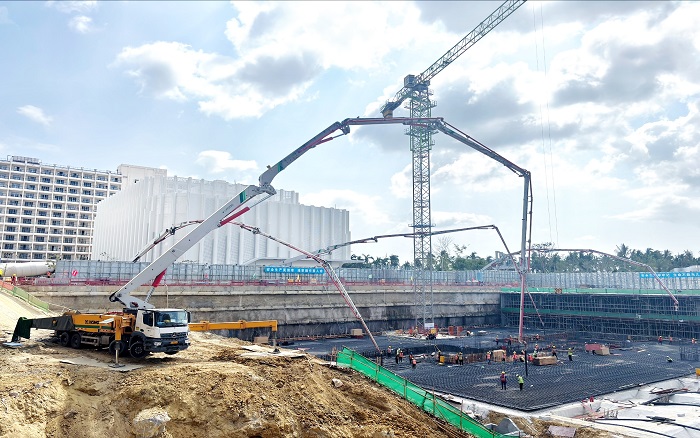 瓊浪翻涌,向海而興。在海南自貿(mào)港建設(shè)的前沿?zé)嵬痢齺啠?臺徐工大米數(shù)泵車臂架而立,憑借超強(qiáng)泵送力、精準(zhǔn)布料與極致穩(wěn)定性,持續(xù)攻堅(jiān)、高效作業(yè),將10000方C40P8高標(biāo)號混凝土精準(zhǔn)澆筑入項(xiàng)目核心區(qū),為海南建設(shè)進(jìn)程貢獻(xiàn)可靠的“徐工力量”。
