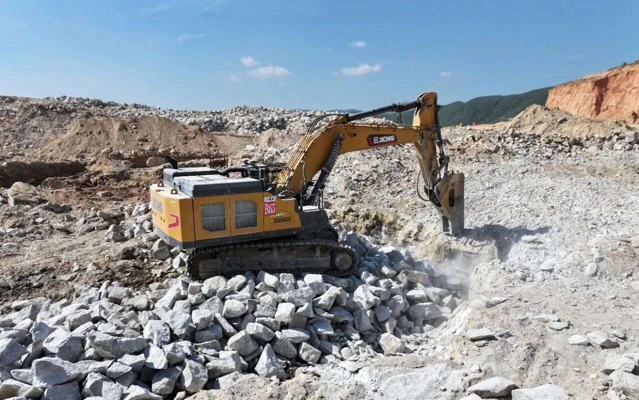 徐工挖掘機(jī)的出色表現(xiàn)源于持續(xù)迭代升級(jí)。榮獲2023年“中國(guó)工程機(jī)械行業(yè)TOP50市場(chǎng)表現(xiàn)金獎(jiǎng)”的XE650GK挖掘機(jī),采用新一代智能電控系統(tǒng),整機(jī)能效提升7%-10%,是攻堅(jiān)硬巖的核心力量。客戶稱贊其“穩(wěn)重順手、配重敦實(shí)、油耗經(jīng)濟(jì)”,40升油的消耗量極具優(yōu)勢(shì)。針對(duì)復(fù)雜工況,徐工精準(zhǔn)搭配設(shè)備:石方作業(yè)選用370、380型號(hào)配1.9m3鏟斗提升重載效率,土方及清表作業(yè)選用200型號(hào)兼顧靈活,多型號(hào)協(xié)同實(shí)現(xiàn)月產(chǎn)15萬(wàn)方,確保項(xiàng)目有望超額完成。