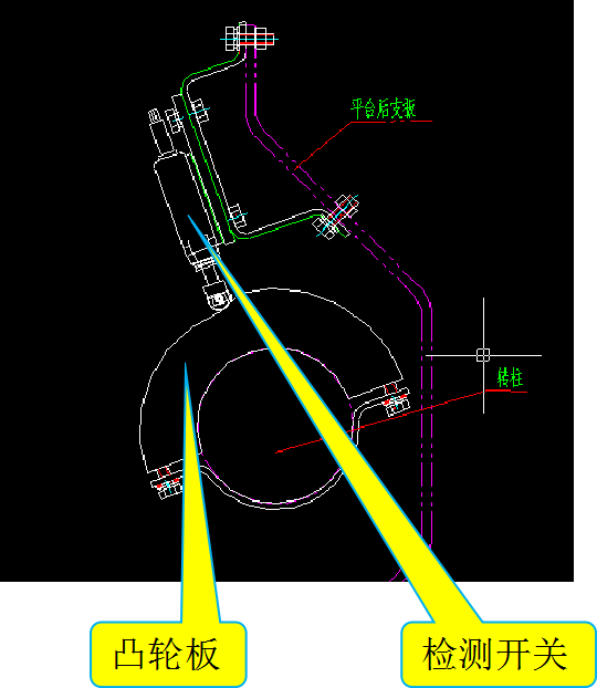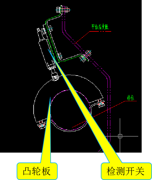 (3)安裝位置:安裝在平臺(tái)轉(zhuǎn)柱中間,開(kāi)關(guān)圍繞凸輪板旋轉(zhuǎn)。