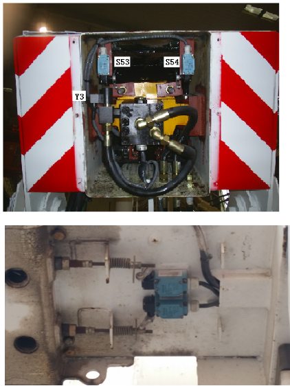 (1)檢測(cè)形式:采用行程開(kāi)關(guān)檢測(cè)裝在伸縮鏈拉桿上的檢測(cè)板,一旦伸縮鏈松斷,會(huì)釋放開(kāi)關(guān)搖桿,然后報(bào)警并限制臂架伸縮動(dòng)作。