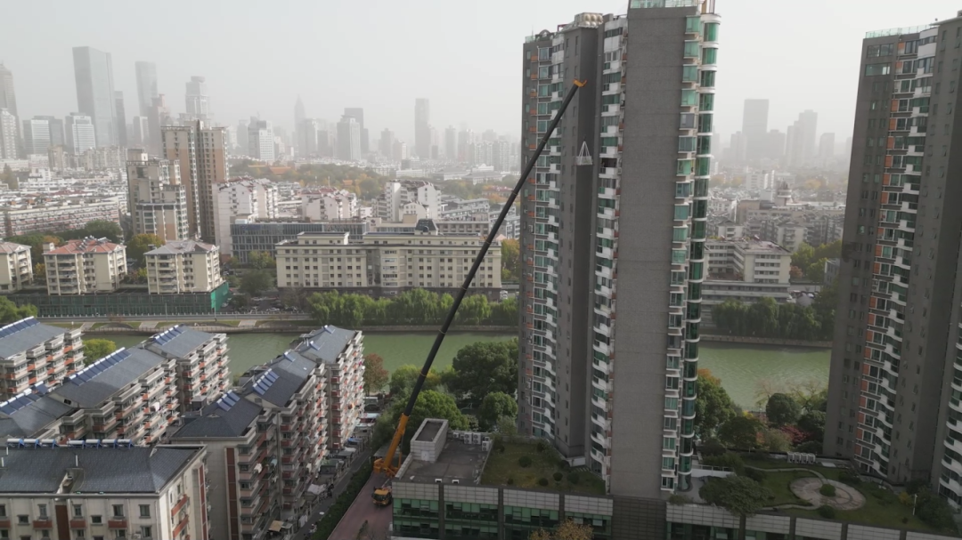 2.8米的車寬讓它剛好能通過這條道路,15米的車長在有限空間里移動(dòng)也很方便。78米的主臂加上自帶30噸配重,讓它不用加裝副臂就能完成這次作業(yè)——這在空間緊張的小區(qū)里,是個(gè)實(shí)實(shí)在在的亮點(diǎn)。
