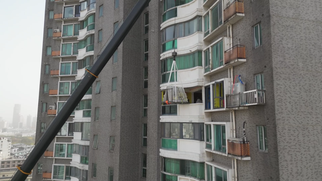 客戶高層住宅裝修,需要把一整摞室內(nèi)板材送到72米高的窗口,吊裝跨度達(dá)到39米,起重機(jī)需要在半空穩(wěn)穩(wěn)停住,等室內(nèi)工人將一張張板材從窗口搬進(jìn)去——這對設(shè)備的穩(wěn)定性提出了極高要求。