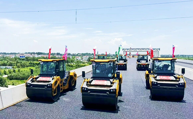 主力設(shè)備:7臺(tái)徐工XD135T壓路機(jī)無(wú)人駕駛施工,搭載四支撐激振器,配合智能駕駛系統(tǒng),精準(zhǔn)覆蓋橋梁路面各區(qū)域;高頻振動(dòng)技術(shù)在保證壓實(shí)質(zhì)量的同時(shí)縮短作業(yè)周期。
