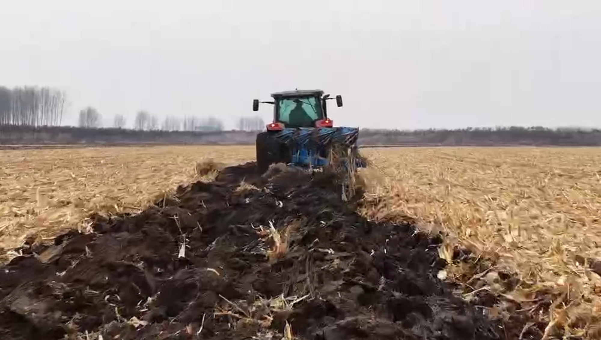 這臺動力換向拖拉機動力強勁,配備大馬力發(fā)動機,扭矩儲備大,面對德惠地區(qū)黑土地深厚的耕層,依然游刃有余。搭載450液壓翻轉(zhuǎn)犁,作業(yè)幅寬大,入土角度精準。隨著拖拉機沉穩(wěn)前行,犁鏵整齊地將土壤翻轉(zhuǎn),黑土層如波浪般翻開,覆蓋嚴密、溝底平整,徹底打破了犁底層。