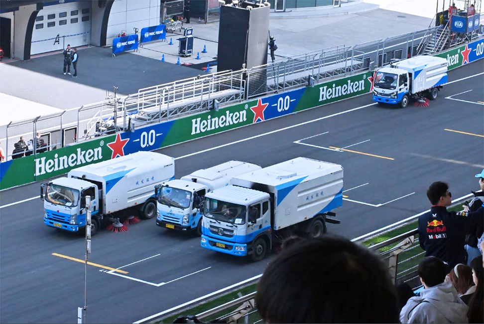 熱知識(shí):F1賽道上的胎屑、碎屑、污漬,對(duì)清潔作業(yè)的精度要求極高。